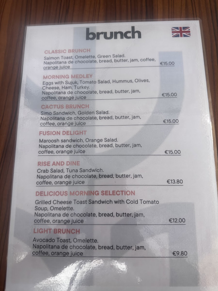 Cactus Brunch Cafe Menu